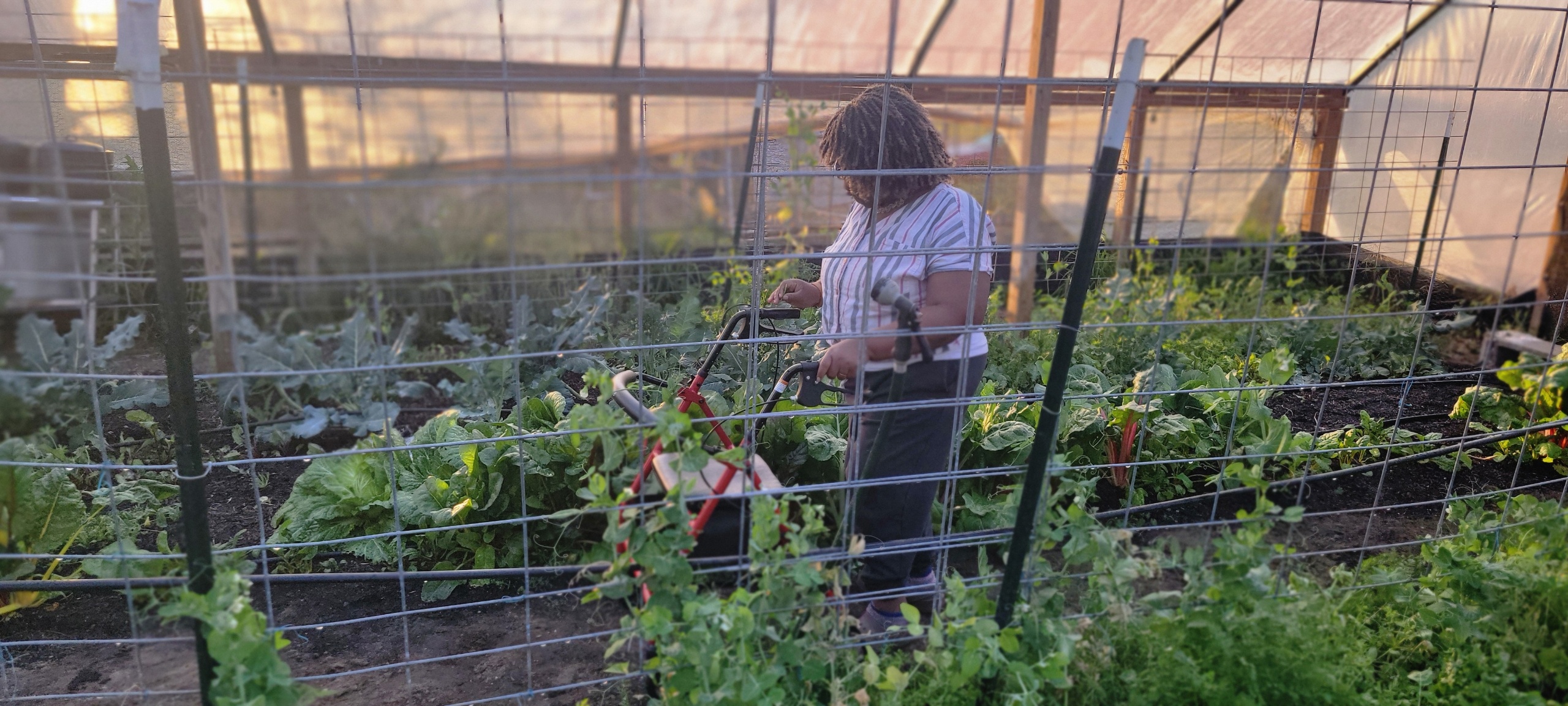 Although I am getting around well, I am not secure with my temporary, new gait. So anytime I am anywhere outside of the home you will like see me using my rollator. As I toured the high tunnel for the first time aft the surgery I was so impressed with how well every thing was growing. I had immense pride in the family for maintaining things so well. I did not want to leave! We recently began harvesting our snow peas, cauliflower, broccoli, and Swiss Chard. These fresh veggies have been a welcome treat for lunch and dinner.